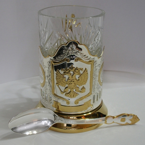 Набор для чая с подстаканником и ложкой «Русский мельхиор. Герб» (золото)